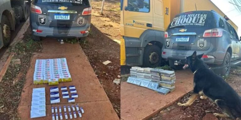 Foram apreendidos 44,8 kg de cocaína e 95 caixas de medicamentos emagrecedores Cão farejador foi usado para vistoriar…