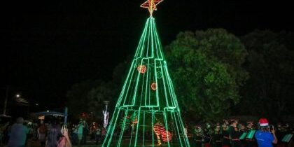 Ao som da Banda Marcial “Cristo Redentor”, Prefeitura entrega Iluminação Natalina em celebração aos 58 anos de fundação do Distrito de Arapuá